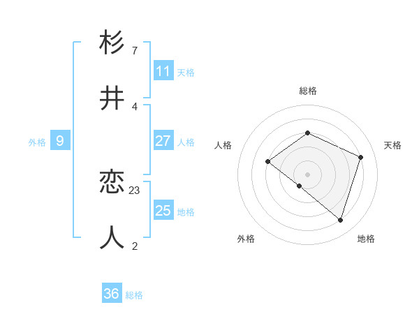 杉井 恋人さんを姓名の画数から五運を鑑定
