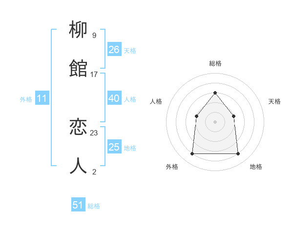 柳館 恋人さんの総格は51画の3点!