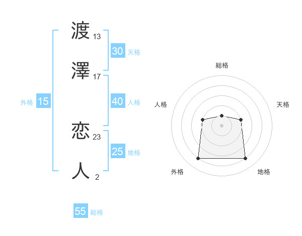 渡澤 恋人さんを姓名の画数から五運を鑑定