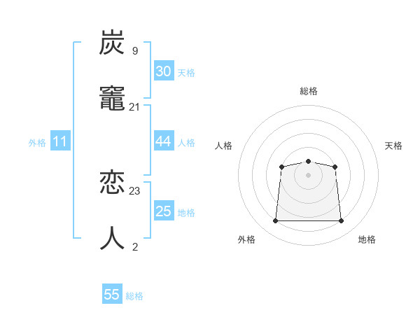 炭竈 恋人さんを姓名の画数から五運を鑑定