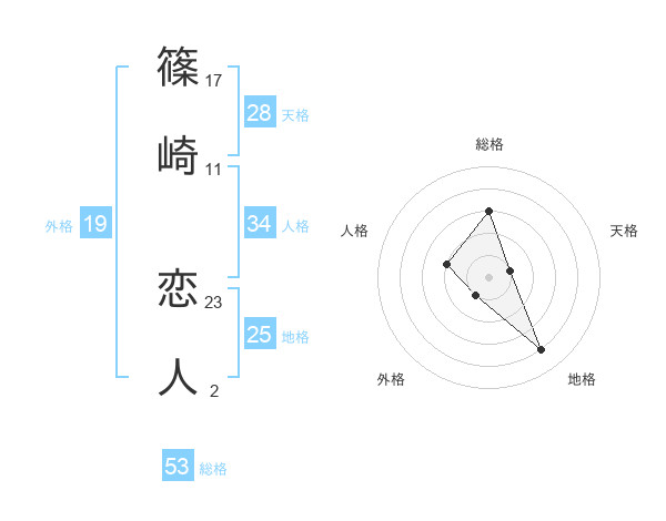 篠崎 恋人さんを姓名の画数から五運を鑑定