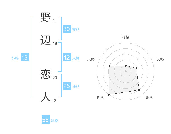 野辺 恋人さんの外格は13画の5点!