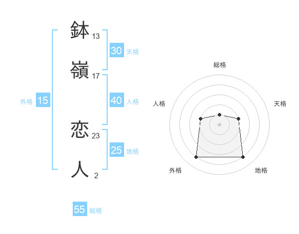 鉢嶺 恋人さんの総格は55画の1点!