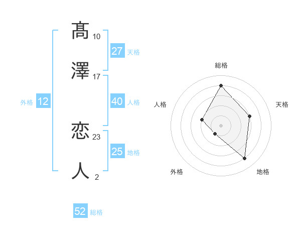 髙澤 恋人さんを姓名の画数から五運を鑑定