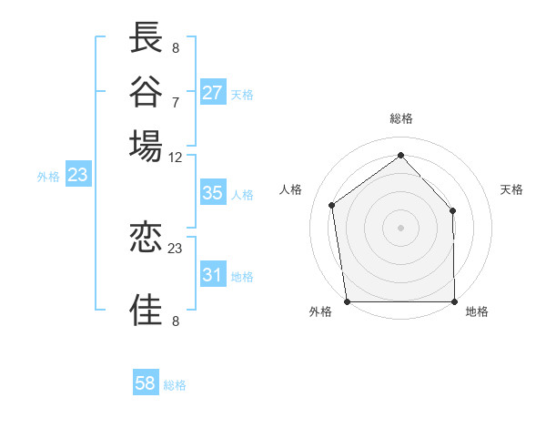 長谷場 恋佳さんを姓名の画数から五運を鑑定