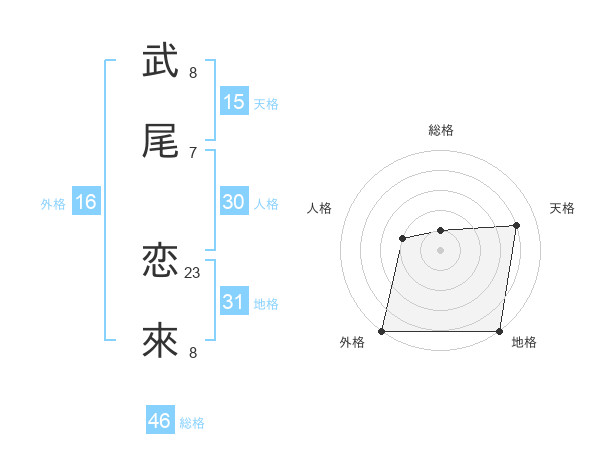武尾 恋來さんを姓名の画数から五運を鑑定