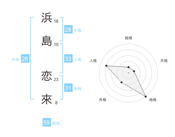 浜島 恋來さんの総格は59画の1点!