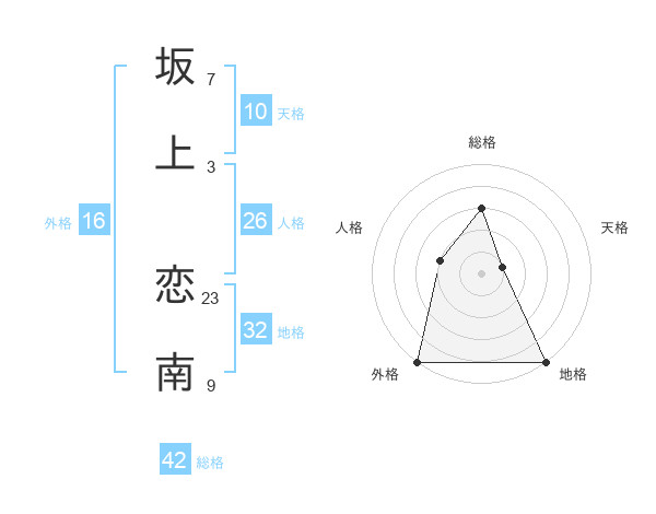 坂上 恋南さんの外格は16画の5点!