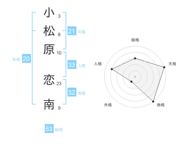 小松原 恋南さんの天格は21画の5点!