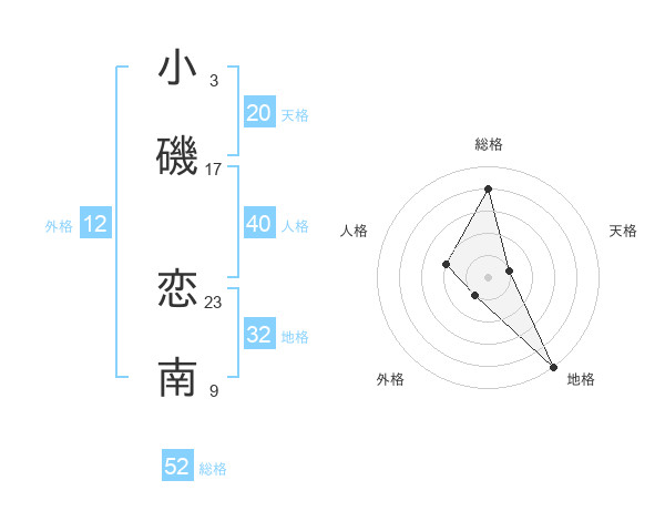 小磯 恋南さんの総格は52画の4点!