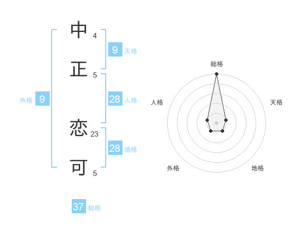 中正 恋可さんの総格は37画の5点!