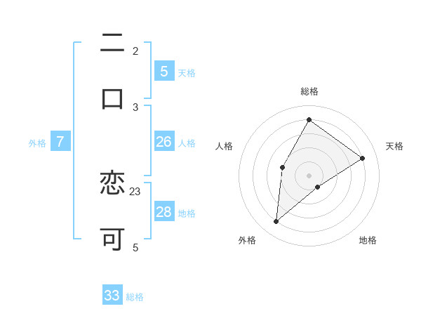 本サイトの鑑定結果の正当性は保証しません。鑑定結果は参考程度にお読みください。実際の名づけにご利用される場合は、姓名判断についてご自身でよくお調べください。