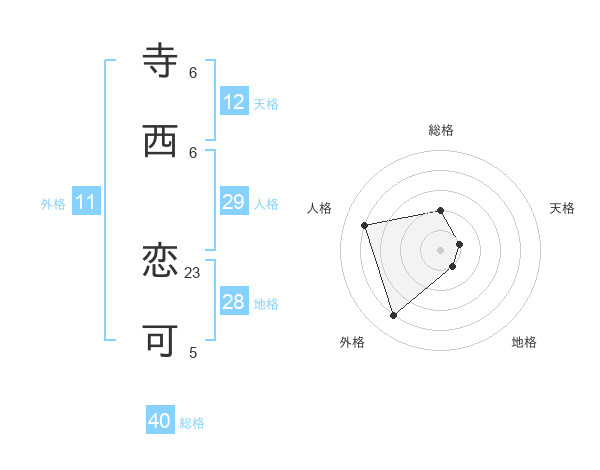 寺西 恋可さんの人格は29画の4点!