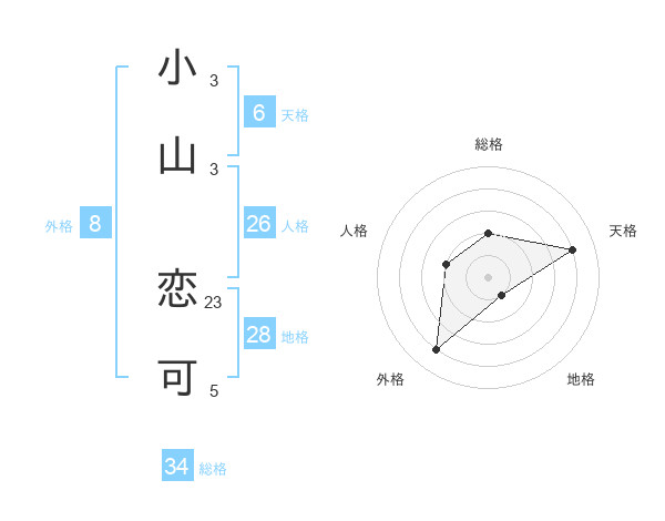 小山 恋可さんの総格は34画の2点!