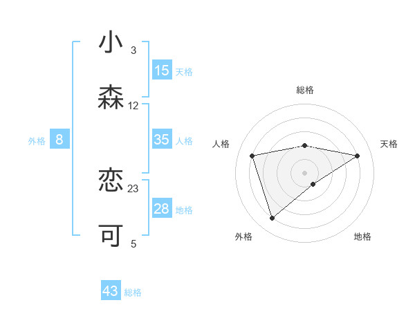 小森 恋可さんの天格は15画の4点!