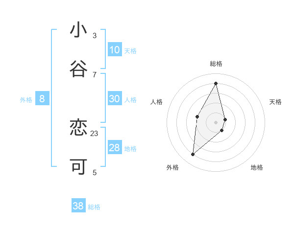 小谷 恋可さんを姓名の画数から五運を鑑定