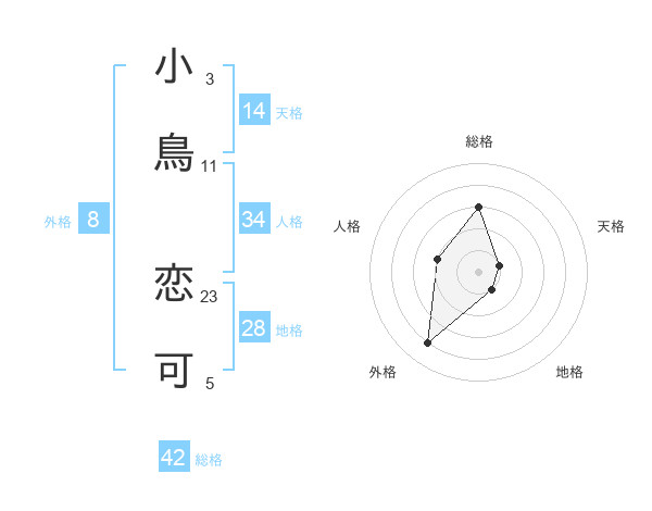 小鳥 恋可さんの外格は8画の4点!