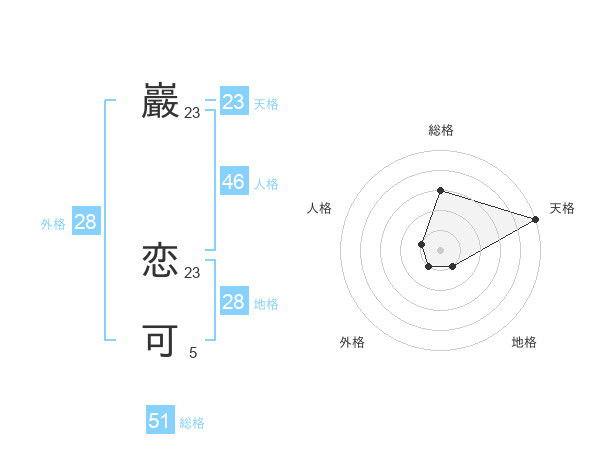 巖 恋可さんの天格は23画の5点!