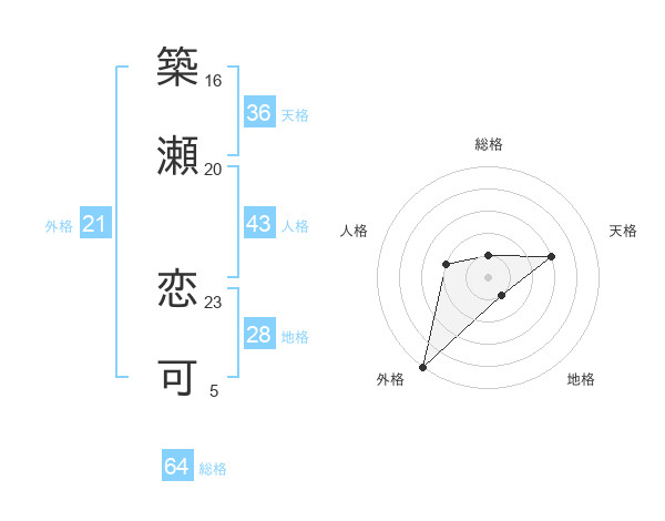 築瀬 恋可さんの総格は64画の1点!