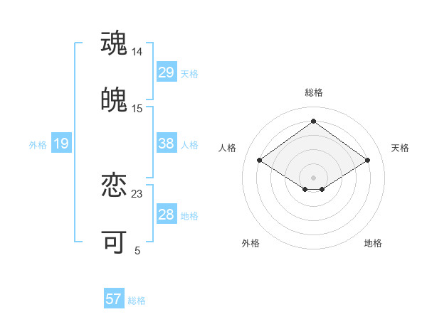 魂魄 恋可さんの総格は57画の4点!