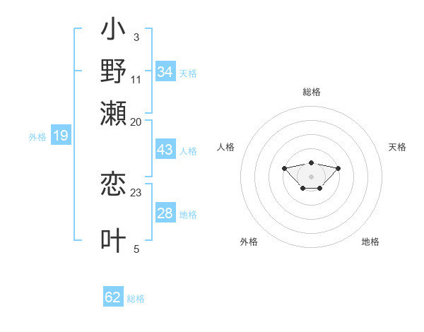 小野瀬 恋叶さんを姓名の画数から五運を鑑定
