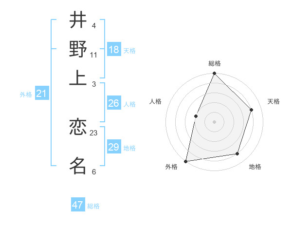 井野上 恋名さんを姓名の画数から五運を鑑定