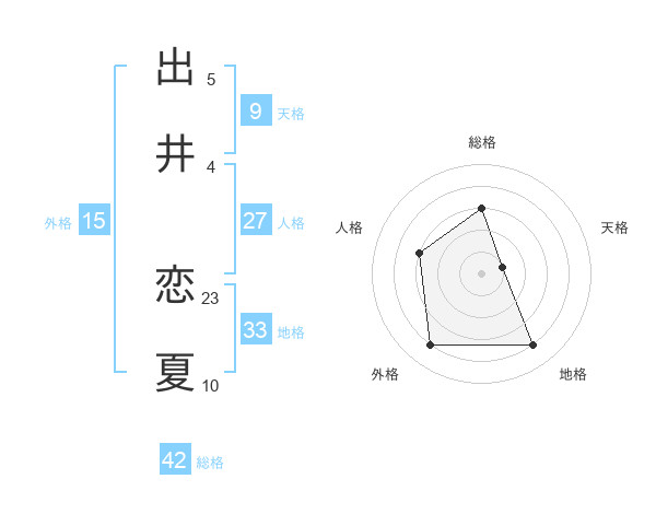 出井 恋夏さんを姓名の画数から五運を鑑定
