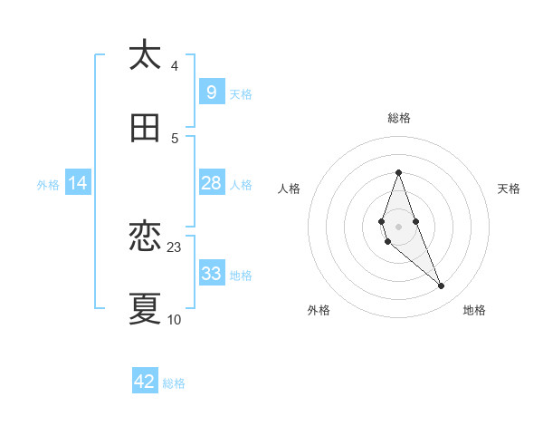 太田 恋夏さんの天格は9画の1点!