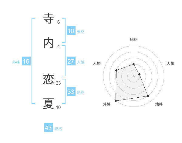寺内 恋夏さんを姓名の画数から五運を鑑定