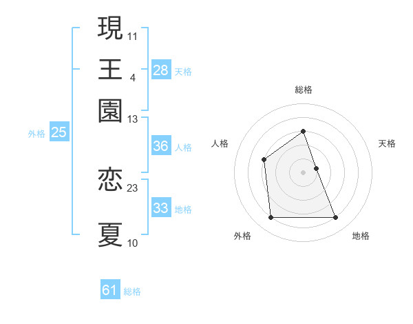 現王園 恋夏さんを姓名の画数から五運を鑑定