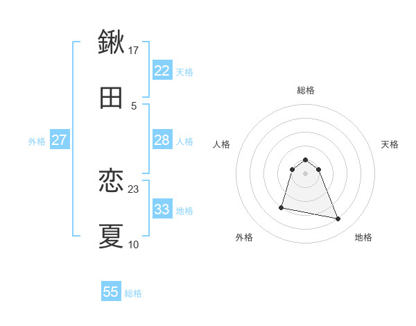鍬田 恋夏さんを姓名の画数から五運を鑑定