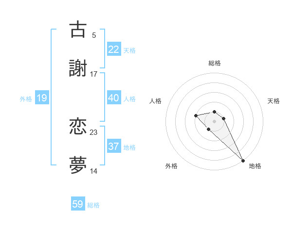 古謝 恋夢さんを姓名の画数から五運を鑑定