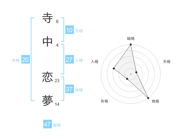 寺中 恋夢さんの総格は47画の5点!
