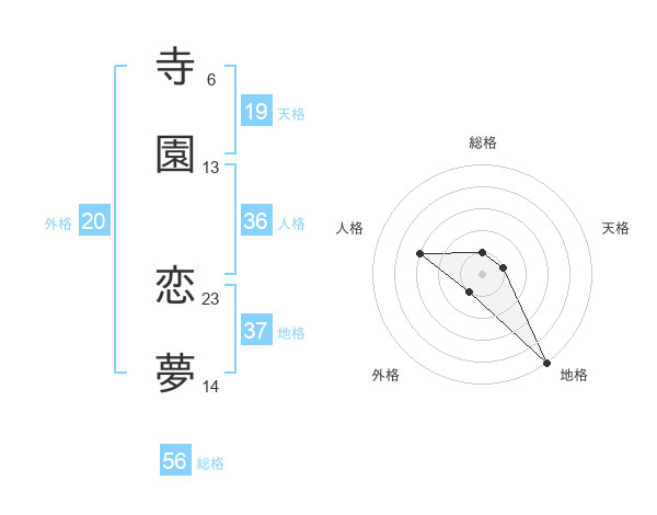 寺園 恋夢さんの総格は56画の1点!