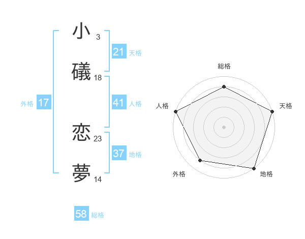 小礒 恋夢さんを姓名の画数から五運を鑑定