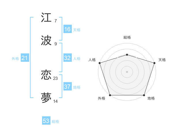 江波 恋夢さんの総格は53画の3点!