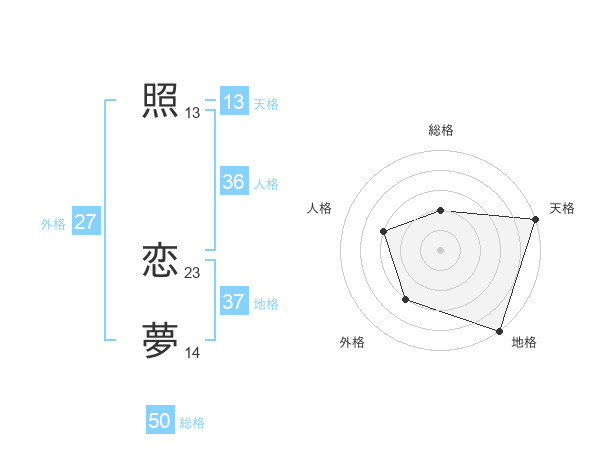 照 恋夢さんの天格は13画の5点!
