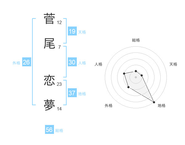 菅尾 恋夢さんを姓名の画数から五運を鑑定