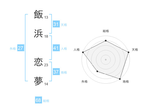飯浜 恋夢さんの総格は68画の4点!