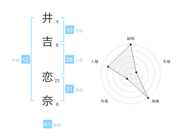 井吉 恋奈さんを姓名の画数から五運を鑑定