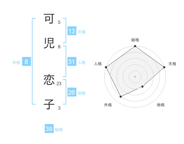 可児 恋子さんの総格は39画の5点!