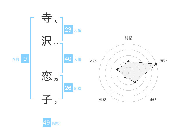 寺沢 恋子さんを姓名の画数から五運を鑑定