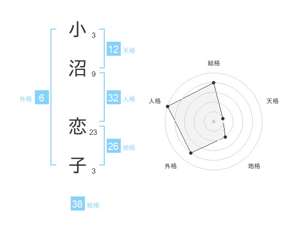 小沼 恋子さんを姓名の画数から五運を鑑定