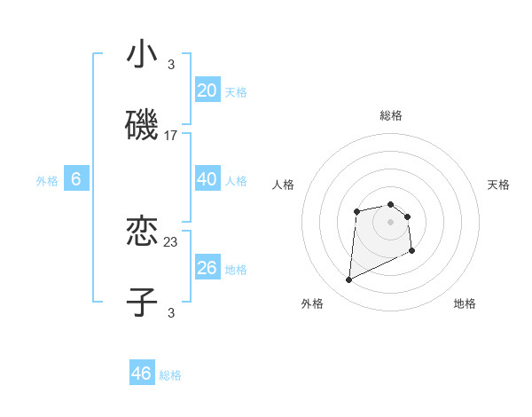 小磯 恋子さんを姓名の画数から五運を鑑定