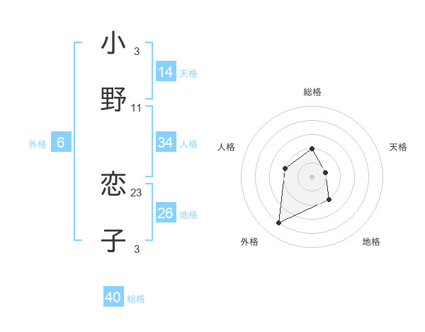 小野 恋子さんの総格は40画の2点!