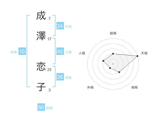 成澤 恋子さんを姓名の画数から五運を鑑定