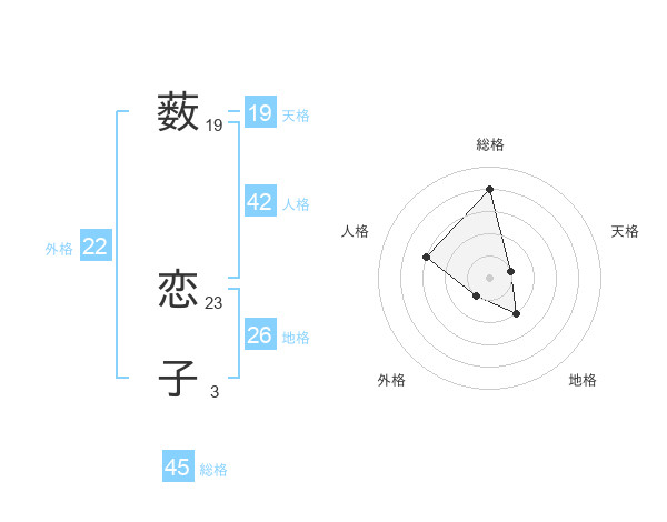 薮 恋子さんの天格は19画の1点!