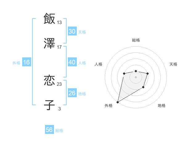 飯澤 恋子さんを姓名の画数から五運を鑑定