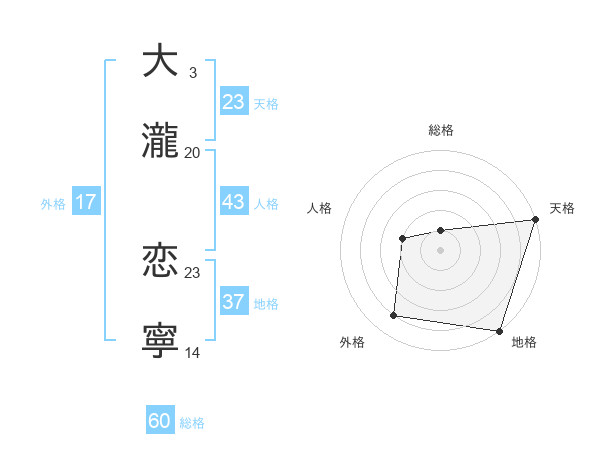 大瀧 恋寧さんを姓名の画数から五運を鑑定