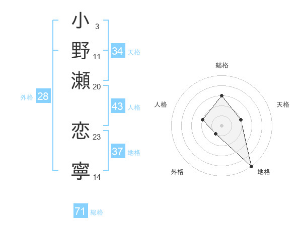 小野瀬 恋寧さんを姓名の画数から五運を鑑定